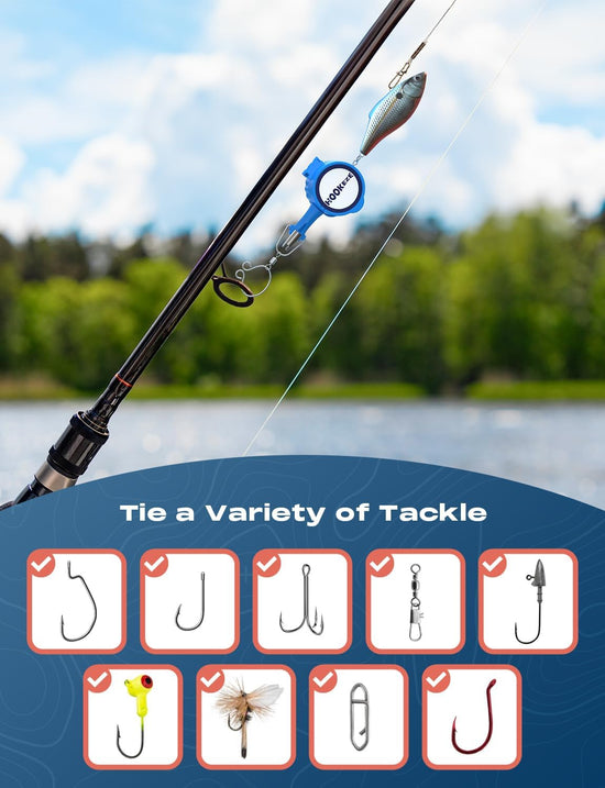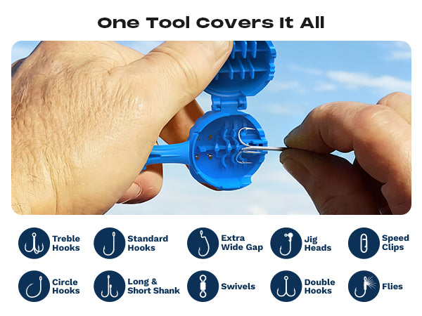 Designed for anglers of all skill levels, This innovative tool makes tying treble hooks, lures, and swivels quick, consistent, and completely safe.