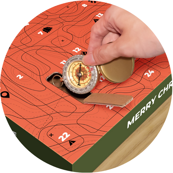 Discover a new adventure surprise behind each door- fire starters, multi-tools and more!